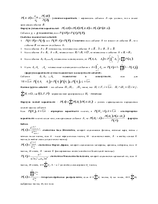Алгебра событий – это такая система  -множеств, если , , а также , если , или это класс -множеств, замкнутый относительно конечного числа арифметических операций (умножение, сложение, вычитание).