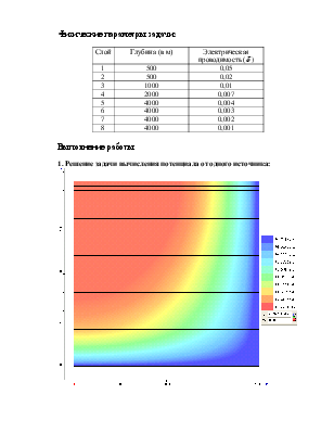 В рамках данной математической модели возможно найти полезные ископаемые по поведению электрического поля от горизонтальной линии в горизонтально-слоистой среде до глубины приблизительно 4000 метров.