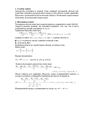 Тема: «Решение уравнения Пуассона в трехмерной области методом Зейделя»