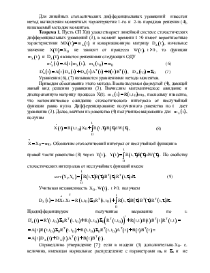 Для линейных стохастических дифференциальных уравнений известен метод вычисления моментных характеристик 1-го и 2-го порядков решения (4), называемый методом моментов.