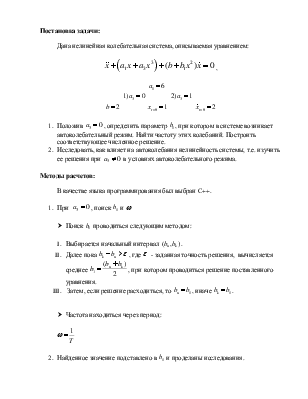 1.  Положив , определить параметр , при котором в системе возникает автоколебательный режим. Найти частоту этих колебаний. Построить соответствующее численное решение.