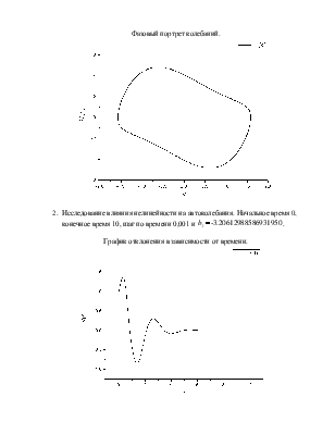 2.  Исследование влияния нелинейности на автоколебания. Начальное время 0, конечное время 10, шаг по времени 0,001 и .