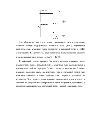 При мгновенном переключении силы тока в питающей петле (в частности при мгновенном выключении тока) измеряемое в приемной петле напряжение спадает до нуля не мгновенно, а постепенно исчезает, изменяясь достаточно сложным образом (рис.1).