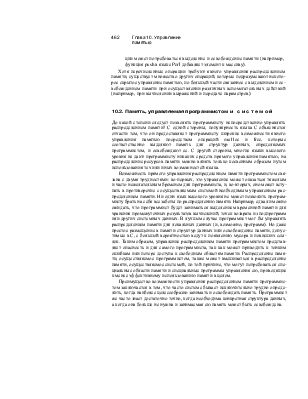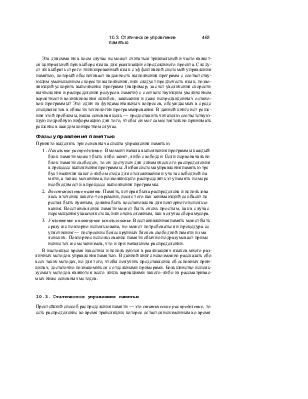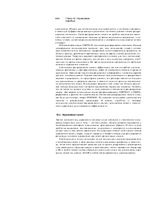 почти нет прямых способов управления памятью. Программа управляет памятью только косвенно, посредством использования или неиспользования различных возможностей языка. Положение программиста еще более усложняется характерной для разработчиков языков и разработчиков трансляторов тенденцией относить управление памятью к машинно-зависимым вопросам, которые не должны явно рассматриваться в руководствах по языкам. Таким образом, программисту во многих случаях совсем не просто выяснить, какой метод управления памятью применяется на самом деле.