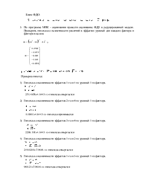 3.  По программе МНК - оценивания провести оценивание ФДО в редуцированной модели. Проверить гипотезы о незначимости различий в эффектах уровней для каждого фактора и фактора в целом.
