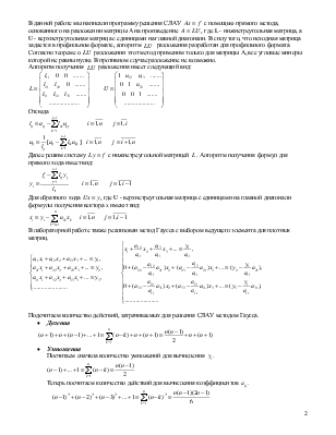 Теперь, исходя из описанных выше формул, посчитаем количество действий, затрачиваемых для решения СЛАУ  методом - разложения: