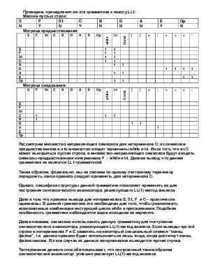 Данная грамматика не является LL1-грамматикой, поэтому требует приведения ее к LL1-виду. Проведя необходимые преобразования, получили следующую грамматику: