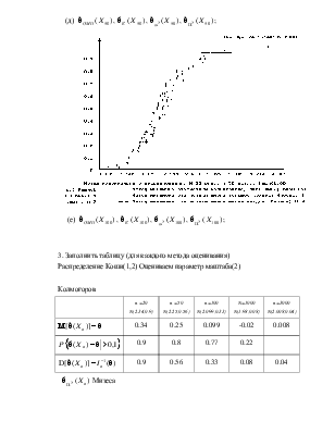 1.  Смоделировать выборки состоящие из оценок максимального правдоподобия – , Колмогорова –  Мизеса –  и  Мизеса при .