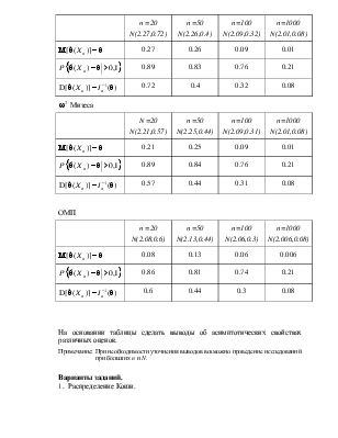 На основании таблицы сделать выводы об асимптотических свойствах различных оценок.