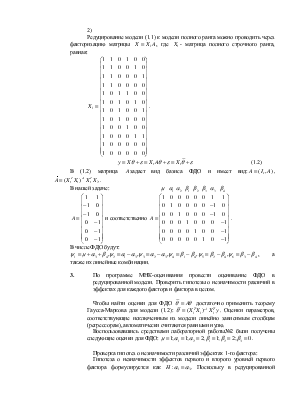 Поскольку имеется определенная свобода выбора этих столбцов, то будем считать линейно зависимыми от других столбцы ,. В модели (1.1) в связи с ее внутренним дефектом ранга несмещенно будут оцениваться только  линейно независимых функций, допускающих оценку (ФДО), образующих базис ФДО.