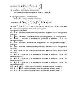 yij…l=m+ai+bj+eij…l, i=1,2,3, j=1,2,3,4, где m – аддитивная постоянная, ai –  эффекты уровней первого фактора, bj – эффекты уровня второго фактора.