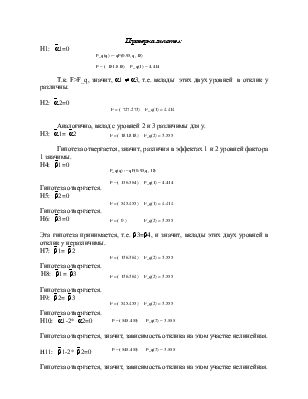 H3: `a1=a2 – гипотеза о незначимости различий в эффектах 1-го и 2-го уровней фактора 1.