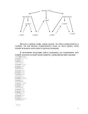 В заключении представим работу программы для перемещения трёх камней, результат которой можно сравнить с приведённым выше деревом: