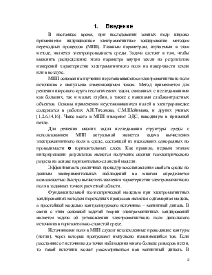 В настоящее время, при исследовании земных недр широко применяется индукционное электромагнитное зондирование методом переходных процессов (МПП). Главным параметром, изучаемым в этом методе, является электропроводность среды. Задача состоит в том, чтобы выяснить распределение этого параметра внутри земли по результатам измерений характеристик электромагнитного поля на поверхности земли  или в воздухе.