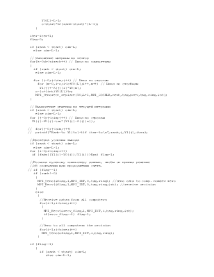 После получения решения каждый компьютер проверяет по своей части вектора решения условие выхода и посылает полученную информацию компьютеру с номером 0. Нулевой компьютер проводит анализ полученной информации и рассылает всем остальным решение об окончании или продолжении счета.