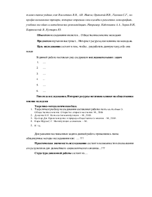 Предметом изучения выступает... Интернет ресурсы, как влияние на молодежь
