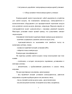 Актуальность разработки электропривода компрессорной установки. Обзор основных типов компрессорных установок