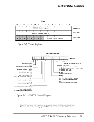 This appendix shows bit definitions for ADSP-218x memory-mapped control registers and non-memory-mapped control and status registers.
