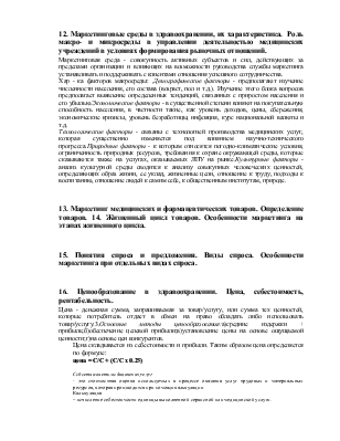 Маркетинг – это комплексный процесс планирования, экономического обоснования и управления производством услуг здравоохранения, ценовой политикой в области лечебно – профилактического процесса, продвижением услуг ( товаров медицинского назначения) к потребителям , а также процессом их реализации